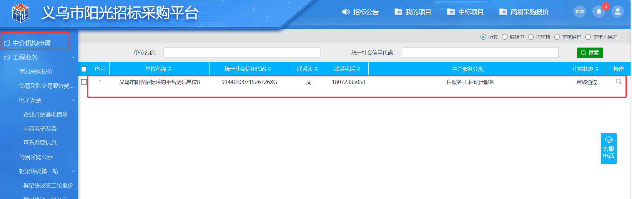意向供应商可登录义乌市阳光招标采购平台,点击左上角“中介机构申请”,编辑提报中介服务事项,提报完成后中介信息会在义乌市阳光招标采购平台“中介供应商”栏中公布。